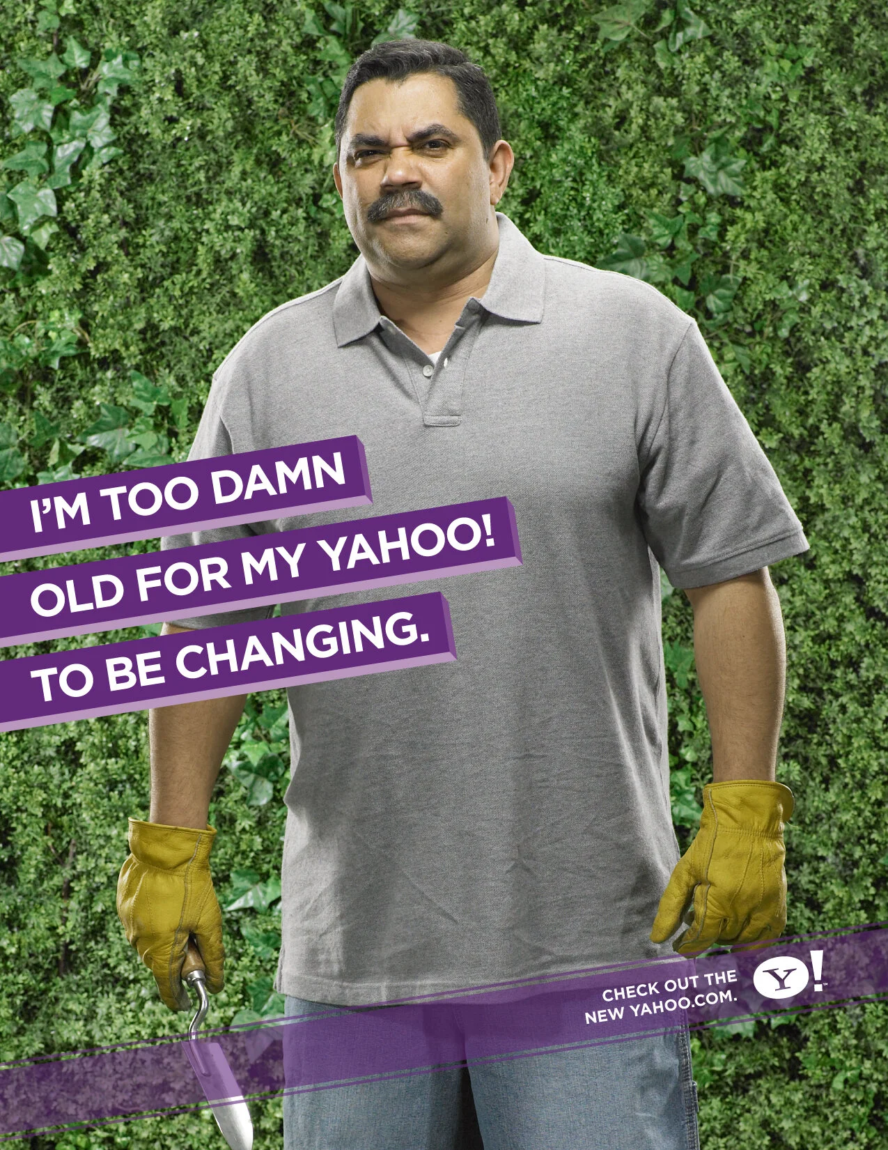 We did a series of ads to promote the launch of the new Yahoo! homepage. The campaign features a series of real people describing their Yahoo!, but unaware of the obvious innuendo. They were also used in a series of banner ads.